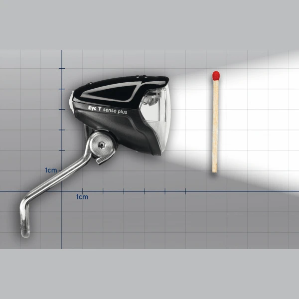 Klein aber hell ist der Busch und MĂŒller IQ2 Eyc Elektrofahrrad Scheinwerfer mit 50Lux LichtstĂ€rke.