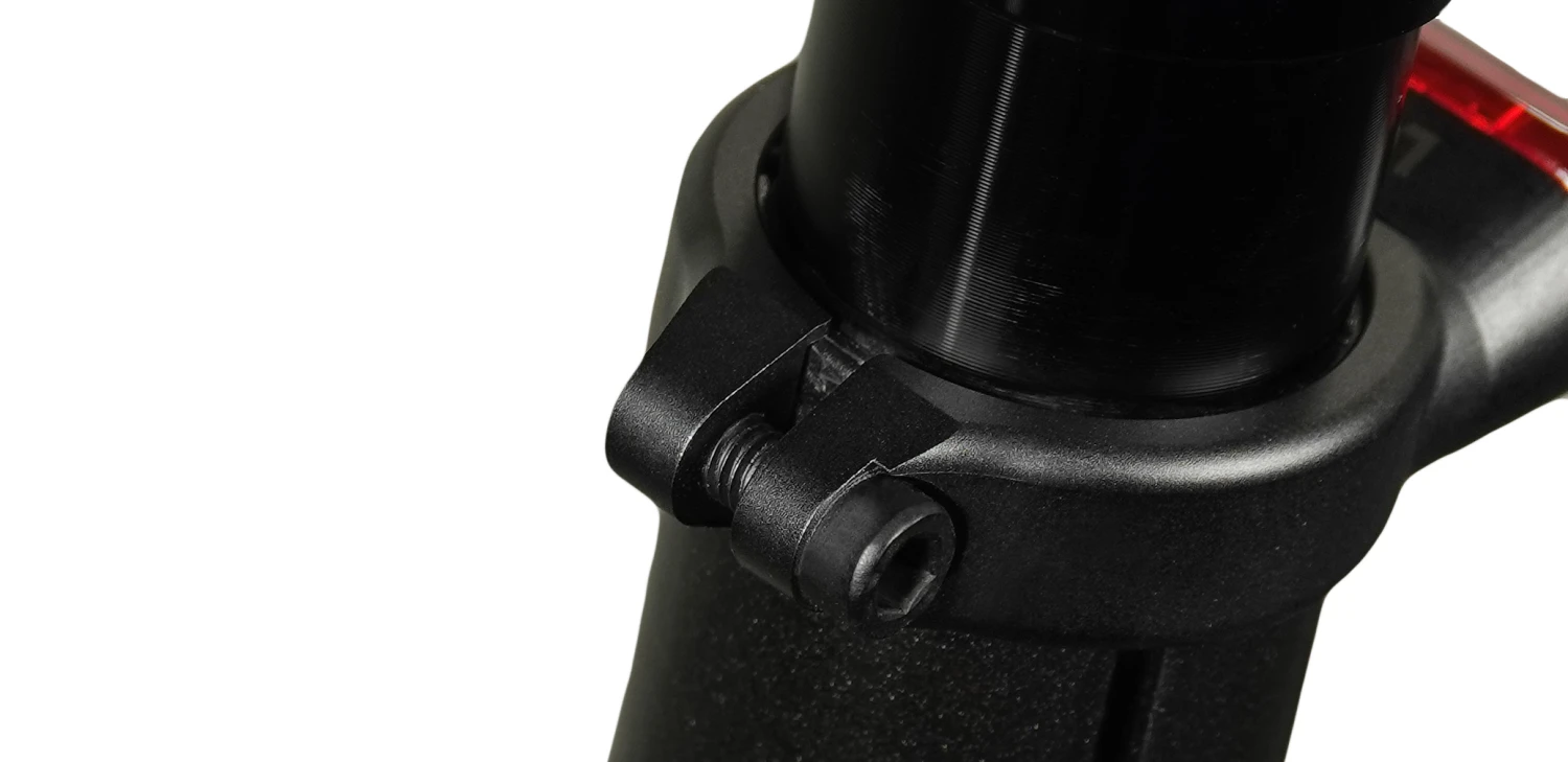 Die schwarz eloxierte CNC-gefräste Schelle ist in den handelsüblichen Durchmessern von 31.8mm, 34.9mm, 35.6mm und 36.4mm erhältlich und klemmt mit bis zu 7Nm die Sattelstütze zuverlässig im Sitzrohr.