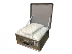 Die Leichtmetall Transportkiste besteht aus einer Aluminiumlegierung und ist ĂŒbereinander stapelbar. Ein besonders stabiler Boden, Rand- und Deckelprofil sowie verstĂ€rkte Ecksicken aus Aluguss, machen diese Kiste zu einem hochwertigen SpezialbehĂ€lter. Da im möglichen Brandfall, Lithium-Ionen Batterien nicht einfach mit Wasser gelöscht werden können, besitz der Akku Safe im Inneren ein feuerfestes Polster mit Aufsaugmaterial aus textuierten Cirrux Glasfasern. Dies wurde auch bei einem Brandtest erfolgreich getestet. Ergebnis war, dass ein Ăbergreifen der Flammen auf benachbarte Akkus nicht möglich ist und die Temperatur an der BehĂ€lteroberflĂ€che unter 100°C bleibt. Daher wurde die Akku Aufbewahrungsbox nach UN-Bestimmungen (3480) als Gefahrengutverpackung zugelassen und fĂŒr den öffentlichen Transport freigegeben. Somit kannst Du deine Akkus auch auf langen Reisen ohne Bedenken in deinem Auto transportieren.